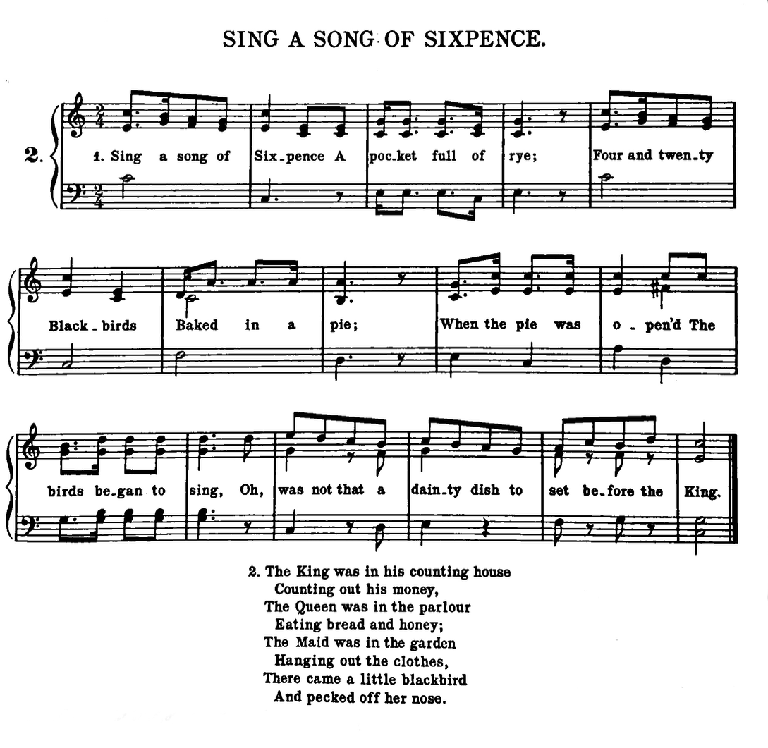 This is a traditional tune for Sing a Song of Sixpence, edited by Alfred Moffat.